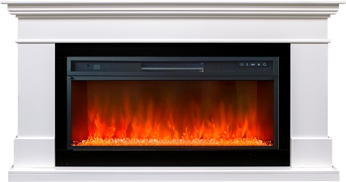 В качестве внутреннего декора используются стильные прозрачные кристаллы и разноцветная галька. Подсветку кристаллов и яркость пламени можно регулировать – доступно 4 возможных варианта. Модель дополнена звуковой имитацией потрескивания дров.