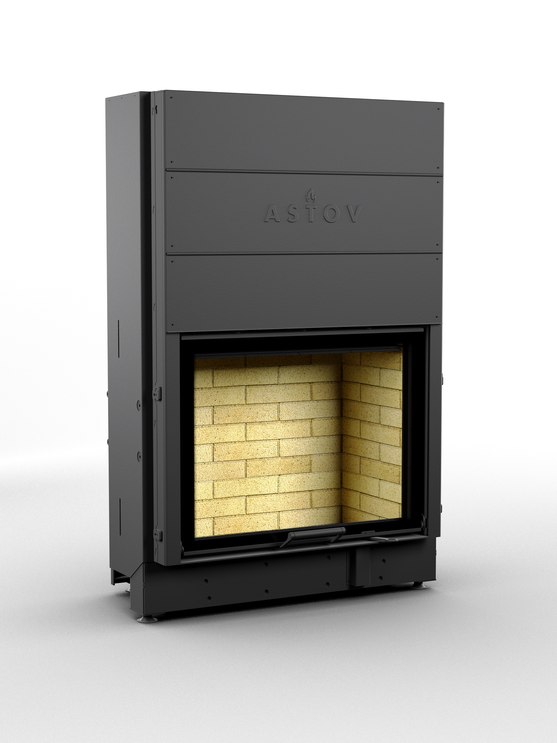 Каминная топка АСТОВ APLIT ПС 8063 У оснащена двойным корпусом, изготовленным из котловой стали, что гарантирует её долговечность. Приваренные П-образные рёбра жёсткости предотвращают деформацию металла при нагреве, сохраняя неизменную форму даже при длительном использовании. Эта продуманная конструкция обеспечивает стабильную работу топки, делая её надёжным выбором для любого дома.